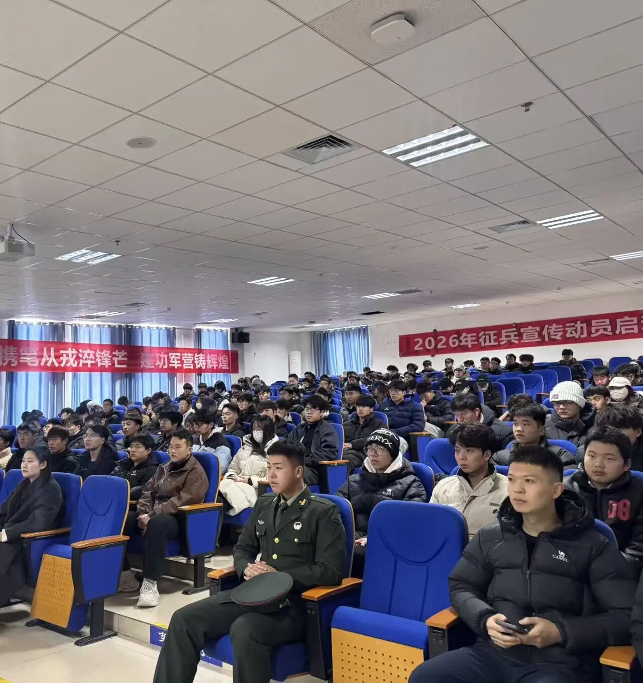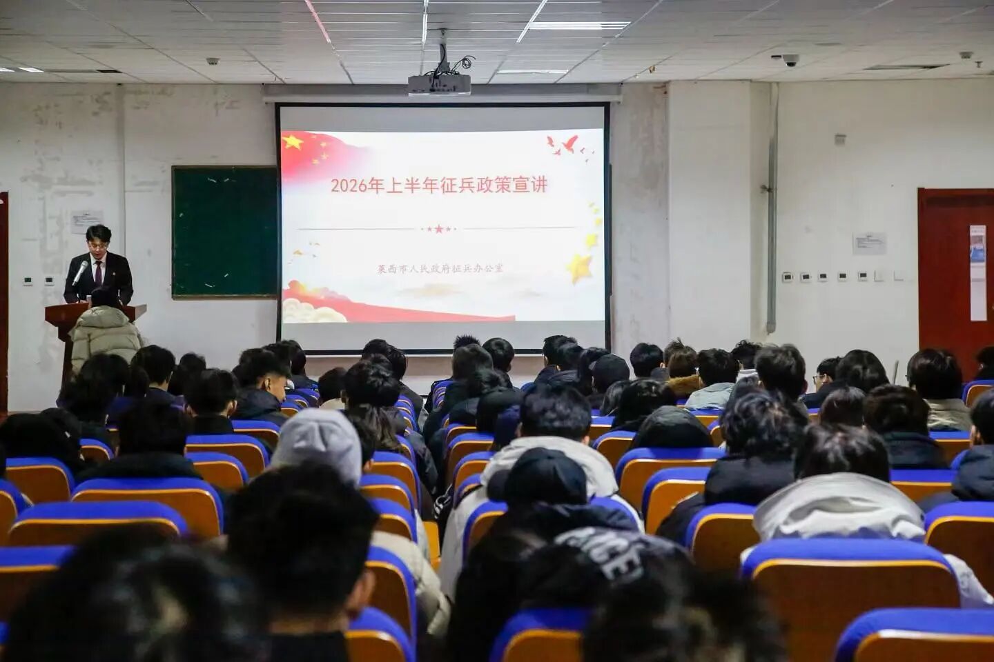 为认真贯彻落实省军区、省教育厅征兵工作会议精神,进一步激发我校大学生携笔从戎、参军报国的昂扬热情,12月25日上午,莱西市2026年上半年征兵宣传进校园启动仪式在我校综合楼121教室隆重举行。莱西市人民武装部领导、征兵办公室相关负责人莅临现场指导,学校学生工作处王晓群老师悉数出席,共同为莘莘学子铺就逐梦军营的绿色通道。