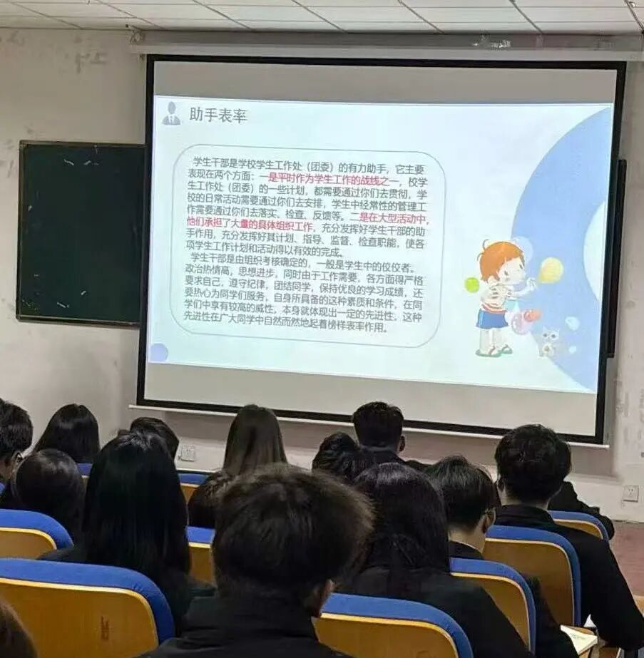 此次培训会的顺利召开,增强了同学们的责任感与使命感,提升了学生骨干队伍的凝聚力与向心力,为本学期学生工作的扎实开展提供有力保障,为推动今后工作的顺利开展奠定了良好基础。