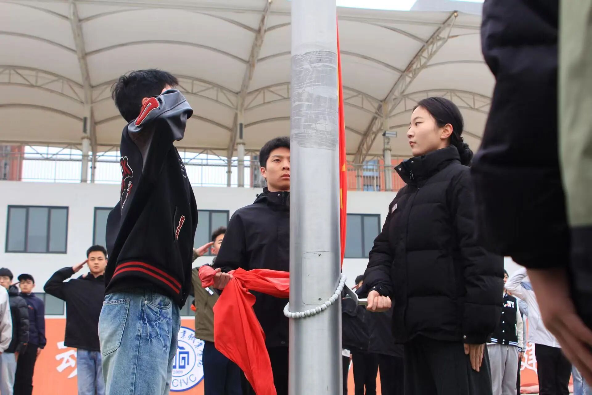 国旗护卫队的训练现场庄严而有序。队员们身姿挺拔、神情肃穆,以最高标准打磨每一个动作。队员们不畏辛苦、反复练习,用坚定的步伐诠释责任,以挺拔的身影彰显担当。每一次庄严训练,都承载着对国旗的崇敬与热爱。他们以赤诚之心刻苦训练,只为在运动会开幕式上,护卫五星红旗庄严入场,展现青春最昂扬的风貌。